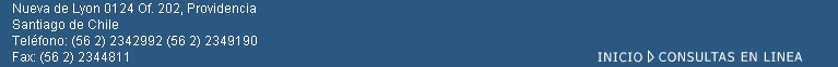 Dirección: Nueva de Lyon Nº 0124 OFICINA 202, Providencia Teléfonos: (56 2) 234 29 92 - (56 2) 234 91 90